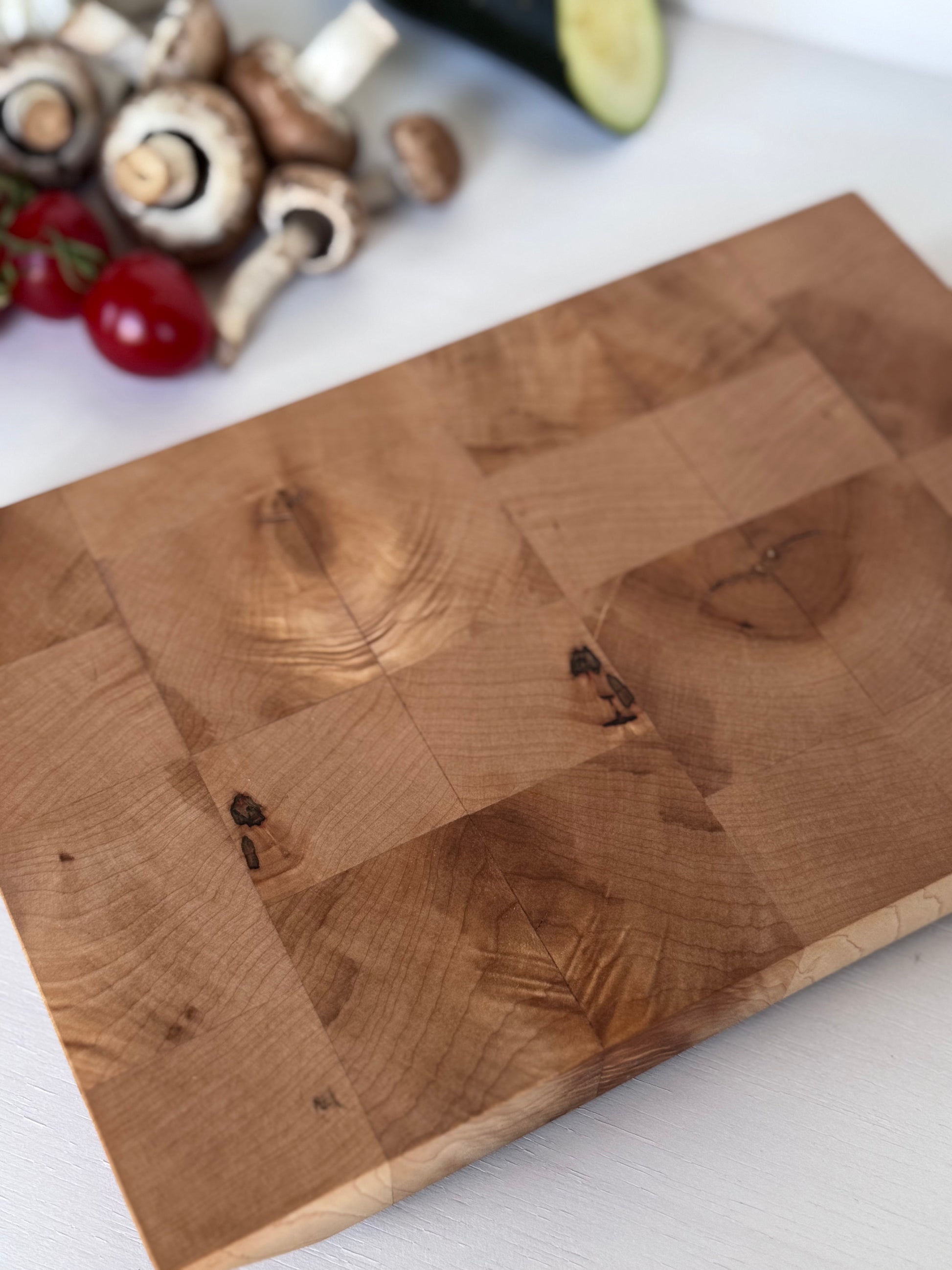 Die Verarbeitung von Hirnholz sorgt nicht nur für eine besondere Optik, sondern macht die Brettchen auch äußerst langlebig und messerschonend.